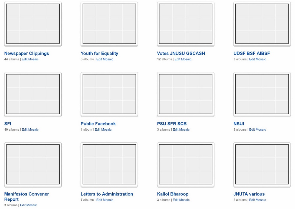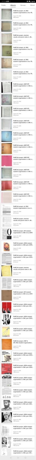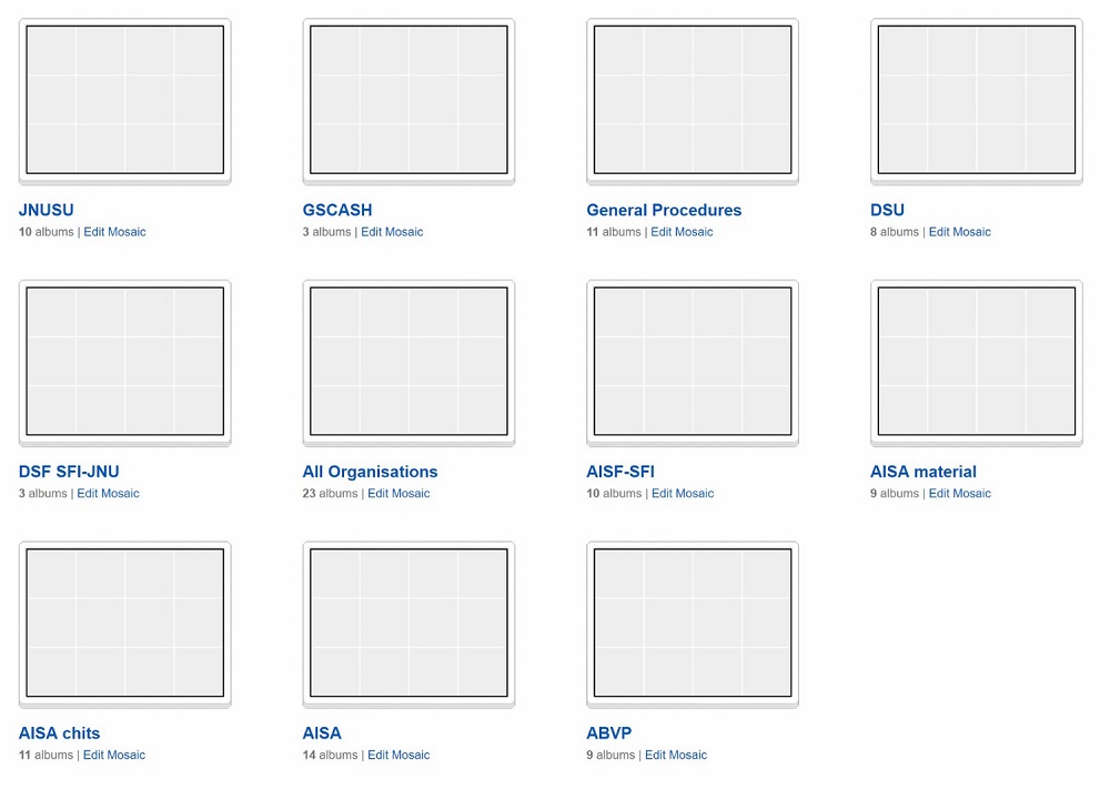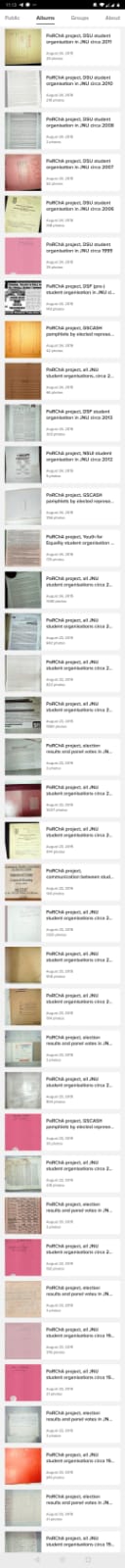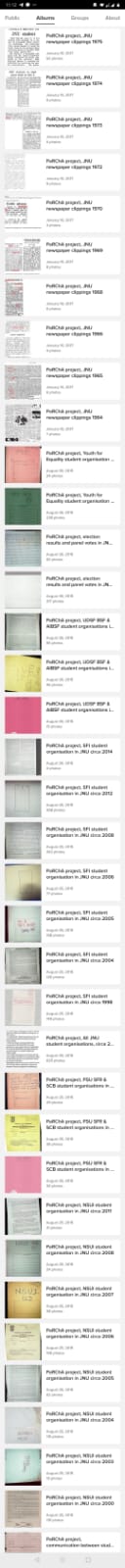 By now, the archive contains around 70000 documents covering four decades (1975-2015) of the political life of Jawaharlal Nehru University. The idea behind the project is to gather archival material of student organisations such as AISA (All India Students Association, student branch of Communist Party of India Marxist-Leninist CPI-ML), SFI (Students’ Federation of India, student branch of Communist Party of India Marxist CPI-M), DSF (Democratic Students’ Federation, associated to Left Collective), DSU (Democratic Students Union, supporter of the Communist Party of India Maoist CPI(Maoist)), AISF (All India Students Federation, student branch of Communist Party of India CPI), ABVP (Akhil Bharatiya Vidyarthi Parishad, student wing of Rashtriya Swayamsevak Sangh RSS), NSUI (National Students’ Union Of India, student branch of the Indian National Congress). PaRChA also comprises material released by elected student representatives in bodies like JNUSU (JNU Stundent Union) and GSCASH (Gender Sensitisation Committee Against Sexual Harassment) as well as teacher representatives in the JNUTA (Jawaharlal Nehru University Teachers’ Association).